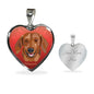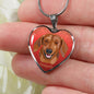 Show how glad you are about your Dachshund (or Wiener) dog by adorning yourself with this very stylish Red Dachshund heart necklace, with a smiling Dachshund design.