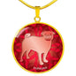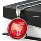 The fact that you love the Pug dog will be evident to anyone when you wear this truly elegant red Pug circle necklace, with a Pug body silhouette design printed on it.
