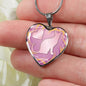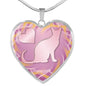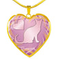 Soft Pink Cat Silhouette Heart Necklace D17
