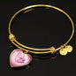 This elegant soft pink French Bulldog heart shaped bangle bracelet, with a picture of a French Bulldog face printed on it, is a heartfelt statement for anyone who likes French Bulldogs to wear .