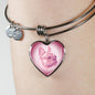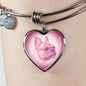 • This elegant soft pink French Bulldog heart shaped bangle bracelet, with a picture of a French Bulldog face printed on it, is a heartfelt statement for anyone who likes French Bulldogs to wear .