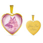 Show how glad you are about your German Shepherd dog by adorning yourself with this very stylish soft pink German Shepherd heart necklace, with the face of a German Shepherd printed on it.