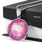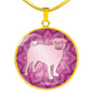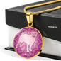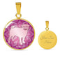 This elegant soft pink Pug circle necklace, with a Pug dog body silhouette image printed on it, is a heartfelt statement for anyone to wear who loves for this wonderful dog breed.