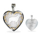 This elegant white German Shepherd heart necklace, with a German Shepherd dog body silhouette image printed on it, is a heartfelt statement for anyone to wear who loves for this wonderful dog breed.