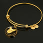 The bangle bracelet is available in two metal colors: "Gold" with 18K Gold Finish, or "Silver", made of high-grade surgical stainless steel (316L). The size of the bangle is adjustable.