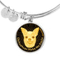 Show how glad you are about your Chihuahua dog by adorning yourself with this very stylish yellow/black round bangle bracelet, with a stylish Chihuahua design.