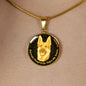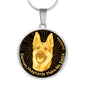 Show how glad you are about your German Shepherd dog by adorning yourself with this very stylish yellow/black German Shepherd round necklace, with a smiling German Shepherd design.