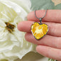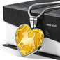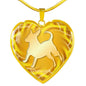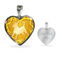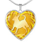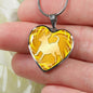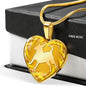 This elegant yellow dog heart necklace, with a dog body silhouette image printed on it, is a heartfelt statement for anyone to wear who loves for this wonderful dog breed.