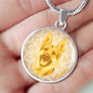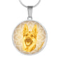 The fact that the German Shepherd dog makes you happy every day will be evident to anyone when you wear this truly elegant yellow German Shepherd round necklace, with a smiling German Shepherd design printed on it.