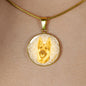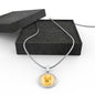 The necklace is available in two metal colors: "Gold" with 18K Gold Finish, or "Silver", made of high-grade surgical stainless steel (316L). The length of the chain is adjustable.