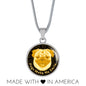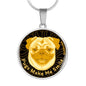 Show how glad you are about your Pug dog by adorning yourself with this very stylish yellow/black Pug round necklace, with a smiling Pug design.