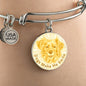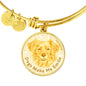 The bangle bracelet is available in two metal colors: "Gold" with 18K Gold Finish, or "Silver", made of high-grade surgical stainless steel (316L). The size of the bangle is adjustable.