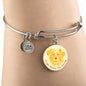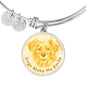 The fact that Dogs make you happy every day will be evident to anyone, when you wear this truly elegant yellow/white dog round bangle bracelet, with a smiling dog design printed on it.