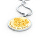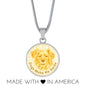 • This elegant yellow/white dog round necklace, with a smiling dog printed on it, is a heartfelt statement for anyone to wear who loves for this wonderful dog breed.