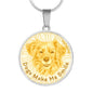 This elegant yellow/white dog round necklace, with a smiling dog printed on it, is a heartfelt statement for anyone to wear who loves for this wonderful dog breed.