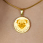 The necklace is available in two metal colors: "Gold" with 18K Gold Finish, or "Silver", made of high-grade surgical stainless steel (316L). The length of the chain is adjustable.