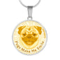 The fact that the Pug dog makes you happy every day will be evident to anyone when you wear this truly elegant yellow/white round necklace, with a smiling Pug design printed on it.